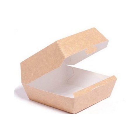 Caja contenedora de hamburguesas Beige de calidad superior Caja de cartón desechable de 13, 5X12X0.7 Cm Contenedor de comida para llevar biodegradable